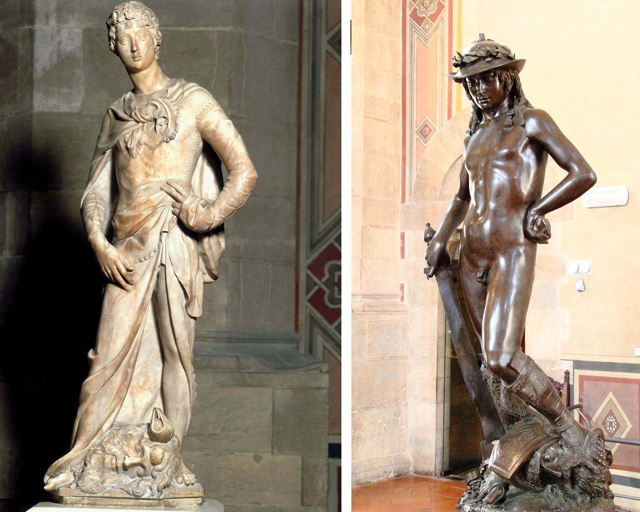 다비드(대리석) / 1408~9년(좌), 다비드(청동) / 1440년 경(우)