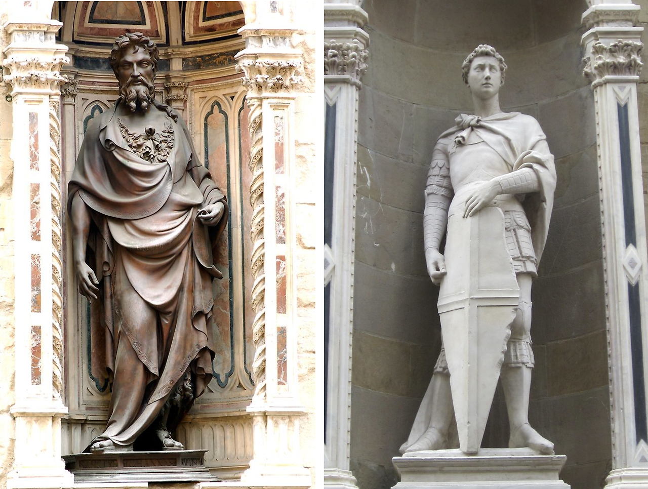 성 요한 by 기베르티 / 1414~16년(좌), 성 게오르기우스 by 도나텔로 / 1416년(우)