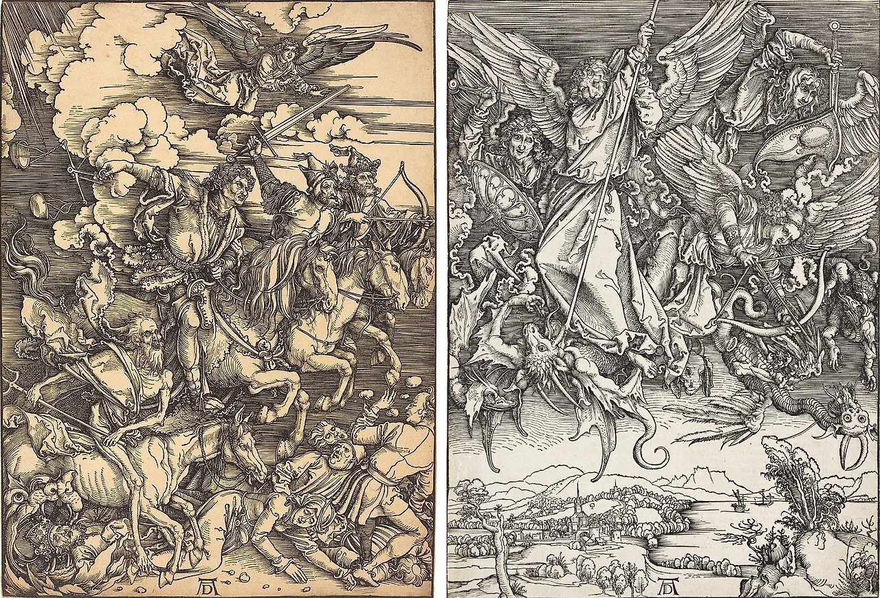 요한계시록은 최후 심판날의 공포와 그에 앞선 여러 가지 징후와 불길한 조짐들을 묘사한 성경의 예언록으로 지금껏 이처럼 무시무시한 광경과 함께 힘 있고 강렬하게 시각화된 적은 한 번도 없었다. 게다가 대량 생산이 가능한 판화의 특성으로 이 작품들은 삽화집으로 제작되어 삽시간에 유럽으로 퍼져나가 그에게 부와 명성을 안겨주었다. 어쩌면 이러한 '뒤러'의 상상력과 대중들의 관심은 당시 루터의 종교 개혁으로 폭발한 교회에 대한 불신과 불만을 반영하는 것인지도 모른다.