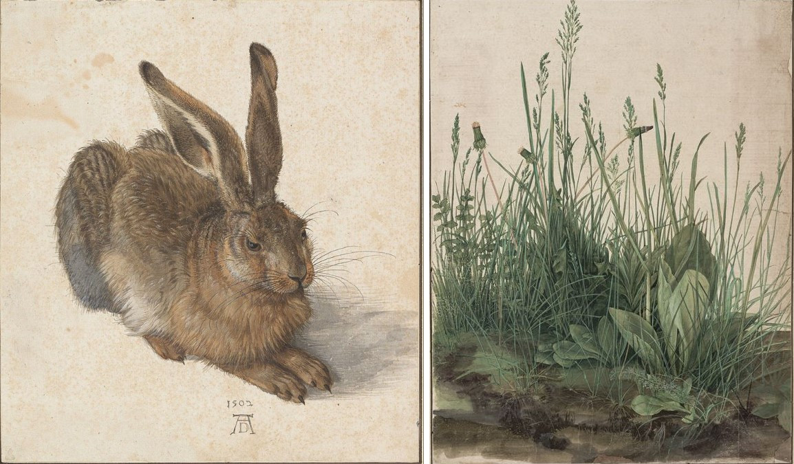 15세기 초, 북유럽의 '얀 반 에이크'가 자연을 거울에 비친 것처럼 표현한 이래로 '뒤러'보다 더 끈기 있고 충실하게 자연의 아름다움을 관조하고 모사한 미술가는 없었다. 그의 습작이나 스케치 중에도 유명한 작품들이 있지만, 습작의 목적보다는 유화, 동판화, 목판화로 그려야 했던 성경의 이야기를 보다 실감 나게 표현하기 위한 훈련의 과정이었다. 이러한 그의 노력은 이후 판화를 독립적인 예술 장르로 발전시키는데 결정적인 역할을 하였다.