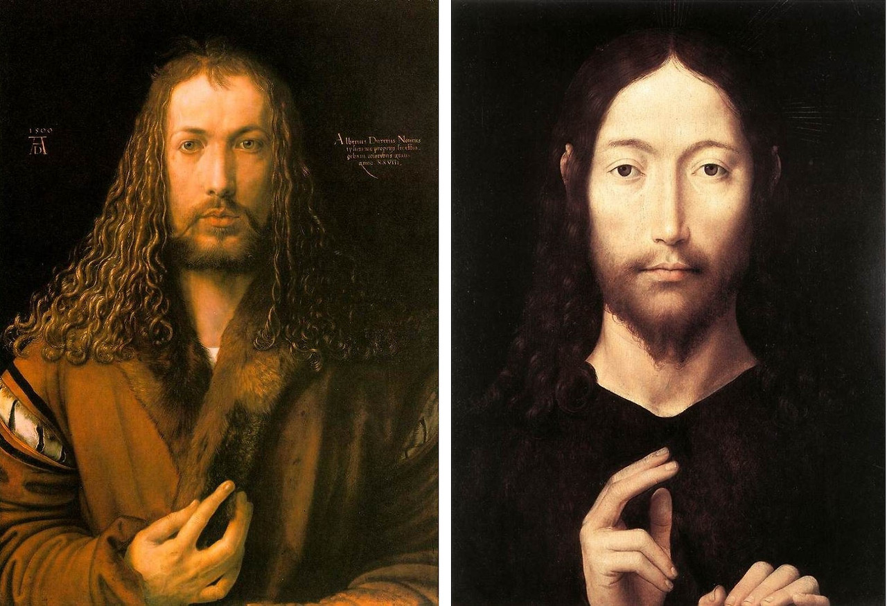 당시 북부 유럽의 회화에서는 예수를 정면으로 묘사하며 대칭적 구도로 그리곤 하였는데, '뒤러'는 그의 3번째 <자화상>을 이와 유사한 예수의 모습으로 표현하였다. 특히, 예수의 창조적 능력을 상징하는 오른손의 제스처와 그의 손을 유사하게 표현하여 신으로부터 받은 자신의 재능을 강조하고 신성한 창조자라는 상징성을 보여주고자 하였다. 즉, 예술가로서의 본인의 정체성에 대한 고민의 흔적이자 예술적 자부심이 얼마나 대단했는지를 상징적으로 보여준다.