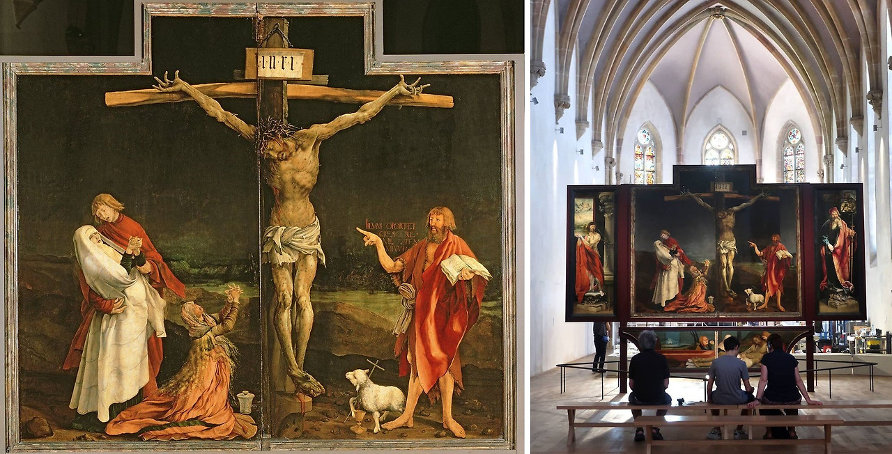 그의 대표작인 <이젠하임 제단화>는 예수의 고통을 극단적으로 표현한 작품으로, 피부가 썩어 들어가는 환자들에게 종교적 위안을 주고자 제작되었다. 강렬한 색채와 비현실적인 인체 표현, 극적인 명암 대비는 보는 이들의 감정을 극대화하며 깊은 인상을 남긴다. 즉, 그의 작품은 이성과 균형을 중시한 이탈리아 르네상스와는 달리, 북유럽 특유의 종교적 감성에 의도적으로 신체를 변형하고 뒤틀리는 등 과장된 초현실적 표현으로 예수의 고통을 더욱 강조한, 기존에는 볼 수 없던 시대 흐름의 반영이라는 점에서 중요한 의미를 갖는다.