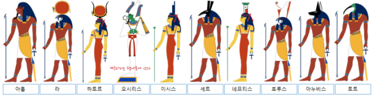 *오시리스-풍요, 농업, 생명 등의 신으로 죽은 사람을 다시 깨우는 신.