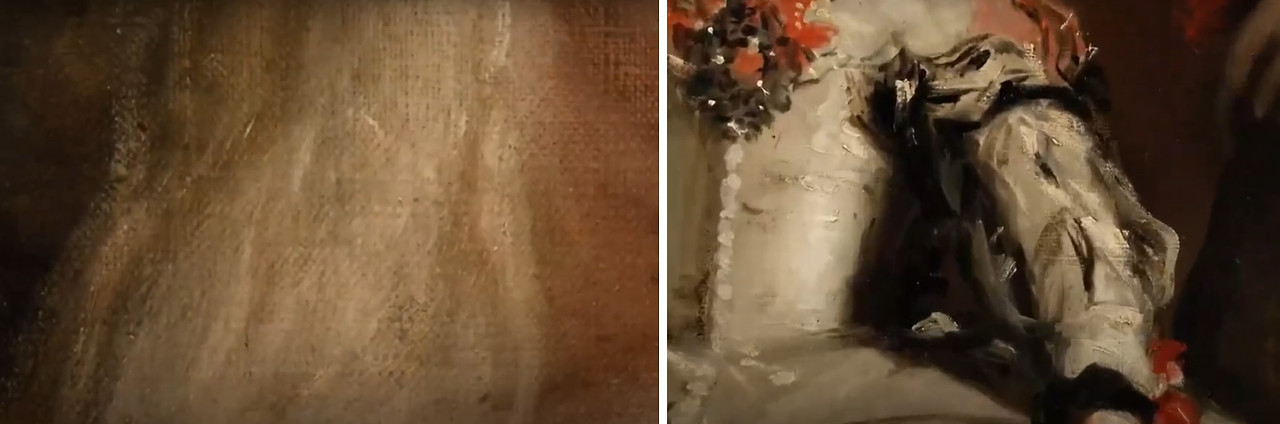 '벨라스케스'는 인물의 윤곽선을 주변 배경과 자연스럽게 섞이도록 흐릿하게 처리했다. 이때 경계가 명확하지 않고, 색감의 미묘한 변화로 구분되기 때문에, 마치 실제 빛 속에서 부드럽게 녹아드는 것처럼 보인다. 그래서 인물이나 사물이 화면 위에 '올려져' 있는 것이 아니라, 그 안에서 ‘살아 움직이는’ 듯한 느낌을 준다. 이렇게 '빛에 따른 색의 덩어리'라는 개념하에 물감을 빛단위로 찍어 그림으로써 사실주의 회화를 새로운 차원으로 끌어올린 선구자로, 단순한 재현을 넘어 빛, 공기, 시점을 통해 '보는 방식' 자체를 회화의 주제로 확장했다.