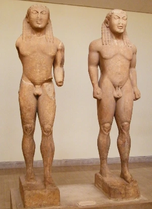 위 조각은 아르카익 시대의 대표적인 쿠로스 조각 중 하나로, '클레오비스와 비톤'이라는 신화적 인물들을 조각한 것이다. 이 두 형제는 신화에서 어머니 헤라를 위해 봉사한 이야기로 유명하며, 그들의 효심과 용맹이 조각상에서 이상화된 모습으로 표현되었고 델포이에 위치한 아폴론 신전에 헌납되었다고 한다.