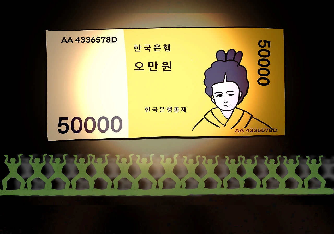 <돈을 떠받드는 대원들 (내가 그렸지만 참.. 일차원적이다..) >