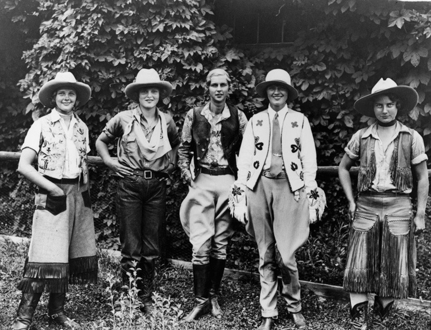서부의 교외화로 인해 농부들과 가축 목장주들은 수입을 늘리기 위해 목장 관광업을 시작하곤 했습니다. 동부의 부유층 사이에서 이러한 'Dude Ranch'(관광목장)에 여가를 보내는 것이 유행하게 됩니다. 동부의 관광객들은 목장에서 노동들이 많이 착용하는 청바지를 보고 기념품 등의 이유로 구매하였고, 동부에서도 청바지가 더욱 퍼지게 됩니다. 이러한 이유들로 데님 의류는 1920~30년대 중산층 대중들 사이에서 착용되기 시작합니다.