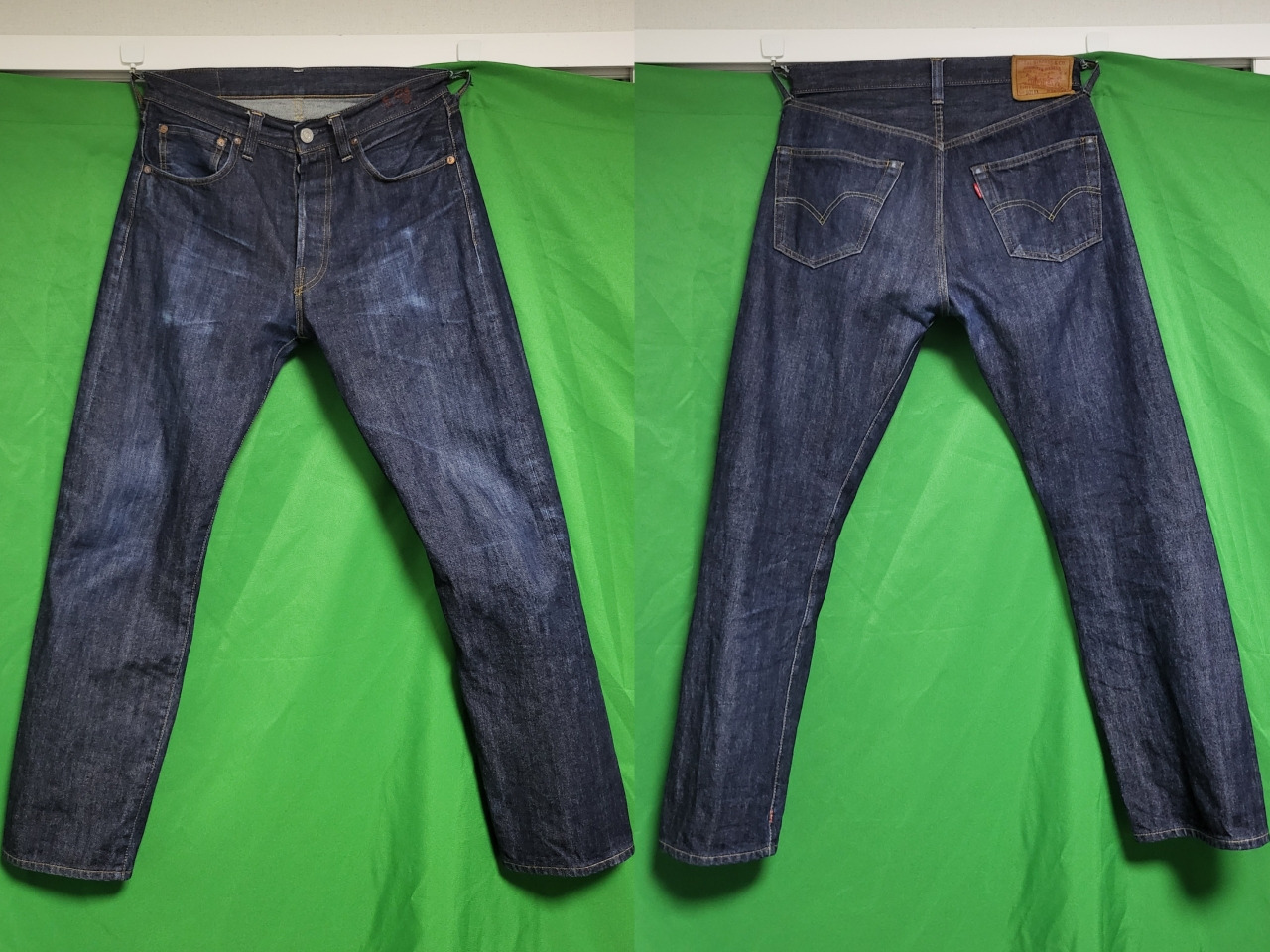 필자가 보유한 LVC 바지의 이름은 47501 Rigid V2로, 앞 두 글자는 연도, 뒤 세 자리는 핏 번호입니다. 즉, 47년도 501(레귤러 스트레이트) 라인이라고 생각하면 되겠습니다. 생산 이후 물에 닿지 않은 "리지드"로 구매하였으며, V2이기에 콘밀 원단이 아닌 일본의 카이하라 원단입니다.