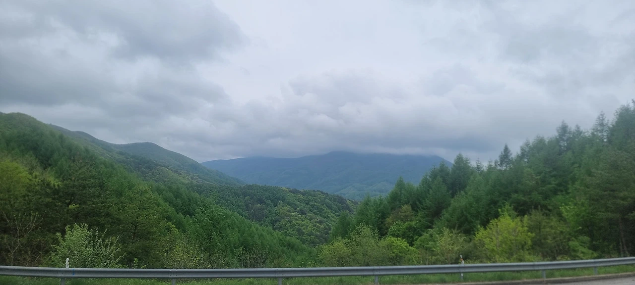 아직 잔잔한 먹구름을 머리에 이고 있는 산봉우리 아래, 짙푸른 녹음은 그 어떤 흐림에도 굴하지 않고 생명력을 뿜어내고 있었다.