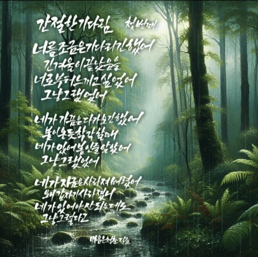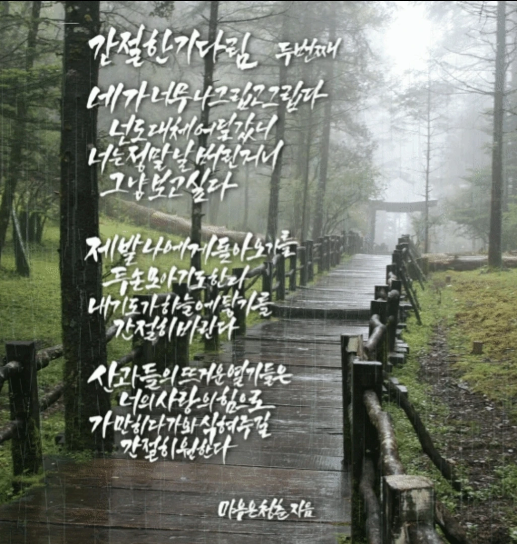 한 번은 봄에 산불로 인해 비를 기다리며 쓴 시 '간절한 기다림'을 아내가 읽은 적이 있었습니다.