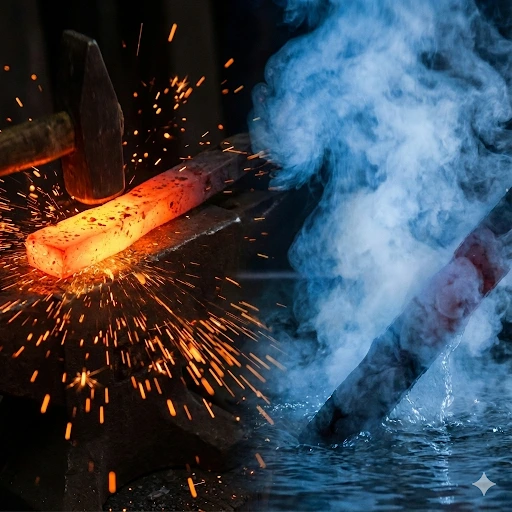 뜨겁게 달아오른 쇠를 반복해서 두드리고, 그걸 다시 차가운 물에 담그는 과정은 고통의 연속이죠.