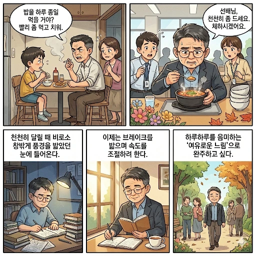 인생 전반전이 속도와의 싸움이었다면, 후반전은 방향과의 동행이다. 빨리 가는 것보다 중요한 건, 제대로 된 풍경을 보며 가는 것이다.