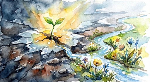 "겨울을 이겨낸 단단한 껍질을 깨는 것은 밖에서 내리친 망치가 아니라, 안에서부터 차오른 생명이 밀어 올린 연약한 초록의 힘이다."