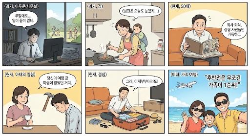 가장 늦었다고 깨달은 순간이, 가족에게 돌아가는 인생의 출발점이다.
