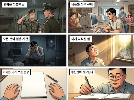 저는 이제 명령에 따르던 삶을 서서히 끝내고, 오직 내 마음의 문장을 따르는 삶으로의 전역(轉役)을 앞두고 있습니다.