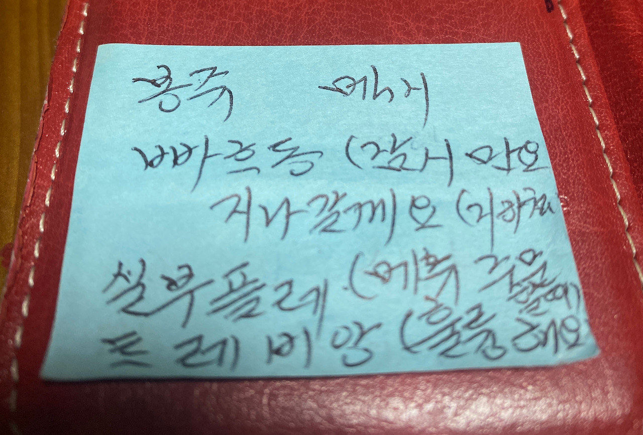 프랑스인들은 자국어로 인사해주는 것을 좋아한다는 내용을 보시고 핵심만 요약해두신 것이다. 난 이 포스트잇을 보고 왠지 모르게 가슴이 울컥했다. 영어 한마디 안 해보셨을 것 같은 우리 엄마이지만 현지 언어도 사용해보고 문화도 경험해보고 싶으셨구나, 여행에 관심이 없으셨던 게 아니라 적극적으로 얘기하기가 어려우셨던 것뿐이구나 생각이 들었다.