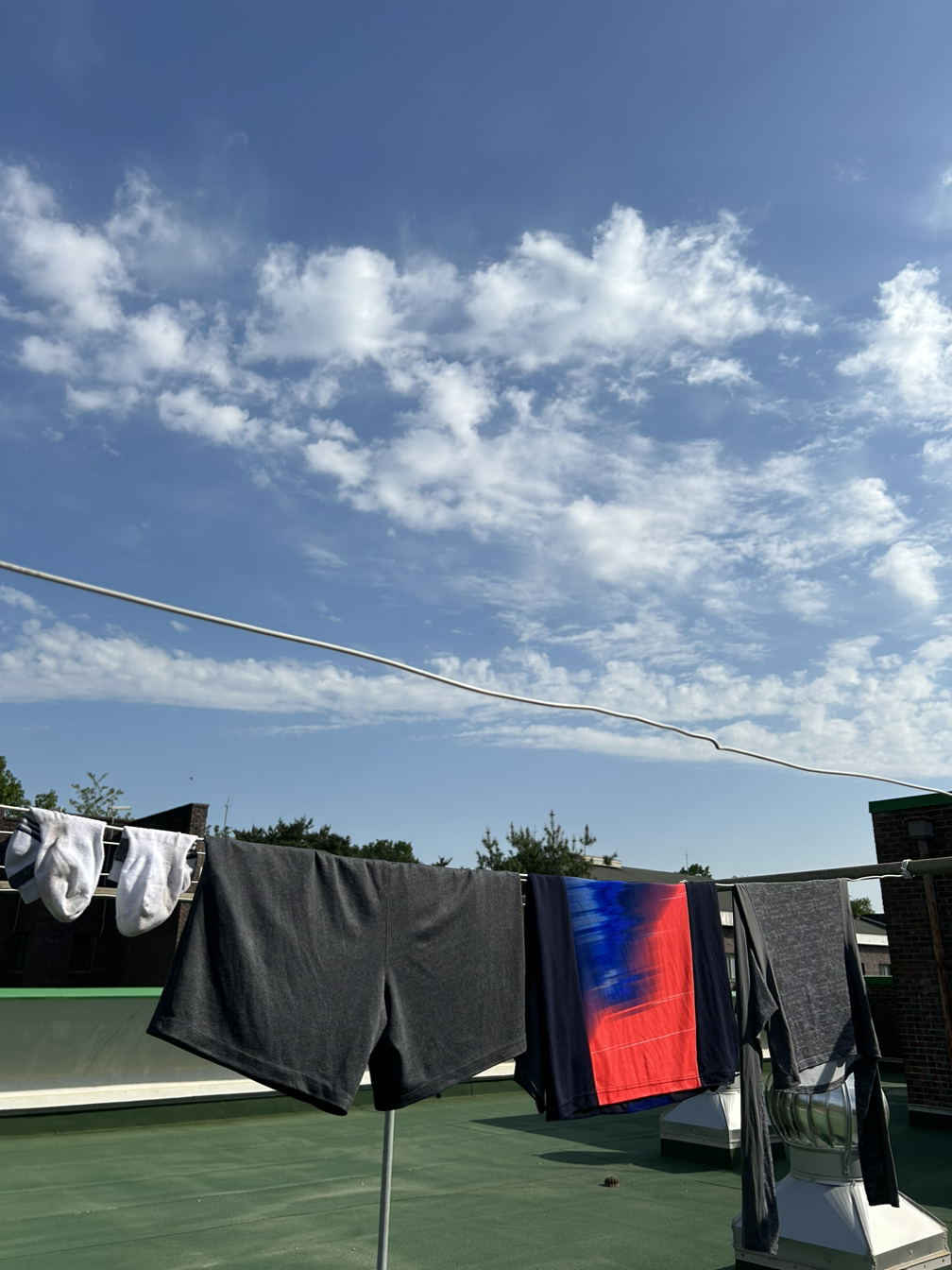먼지와 꽃가루가 쌓여서 잘 닦고 널었습니다.