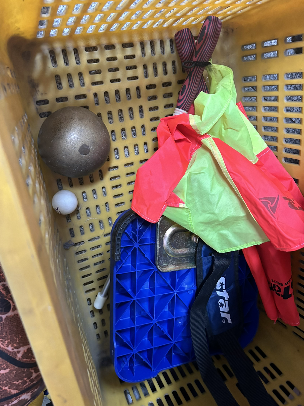 운동장 수업에서 쓸 용기구는 운동장 창고로 다시 내려보낸다.