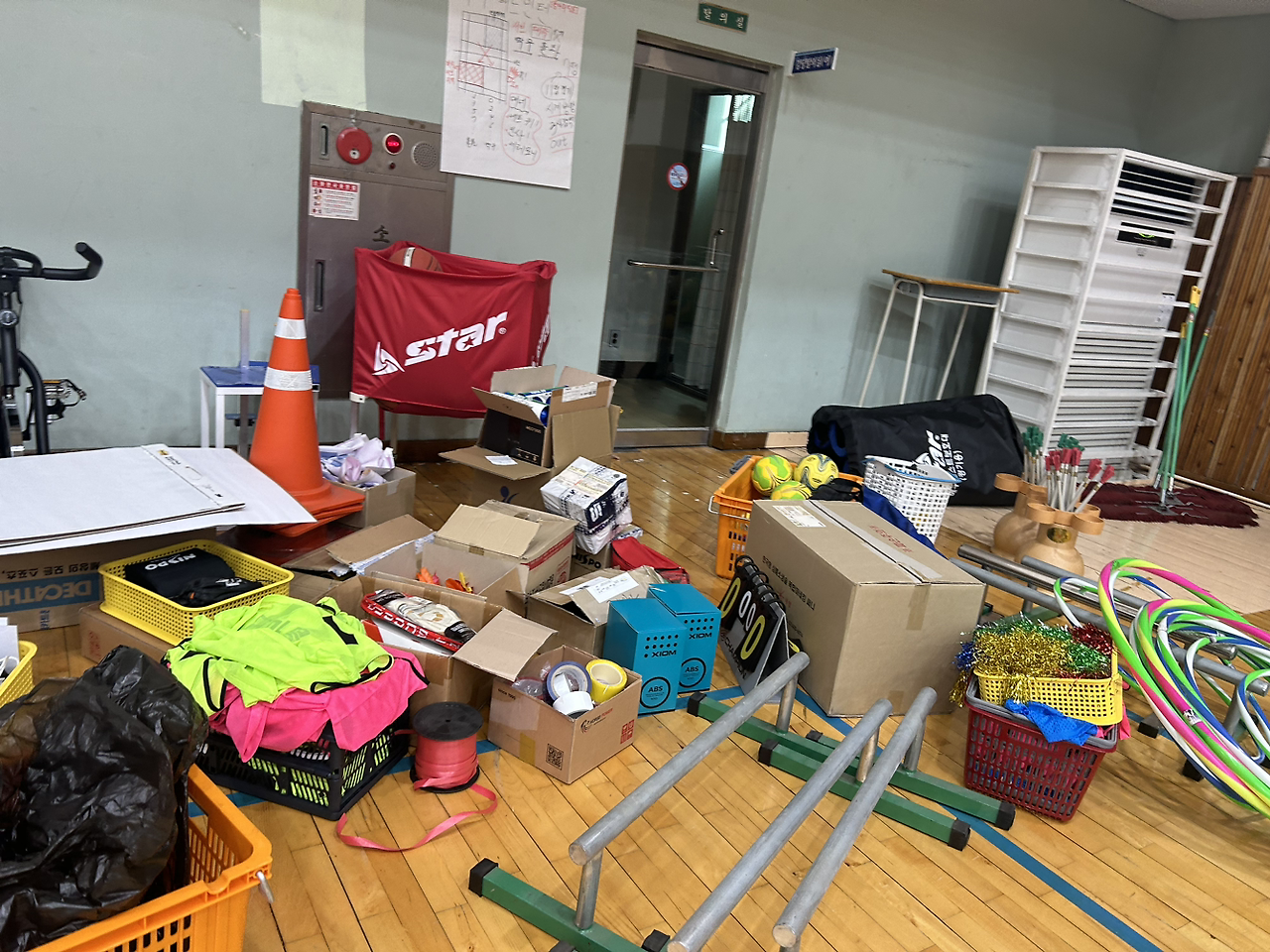 체육 창고 정리가 체계가 없는 것 같지만 기본은 있다.