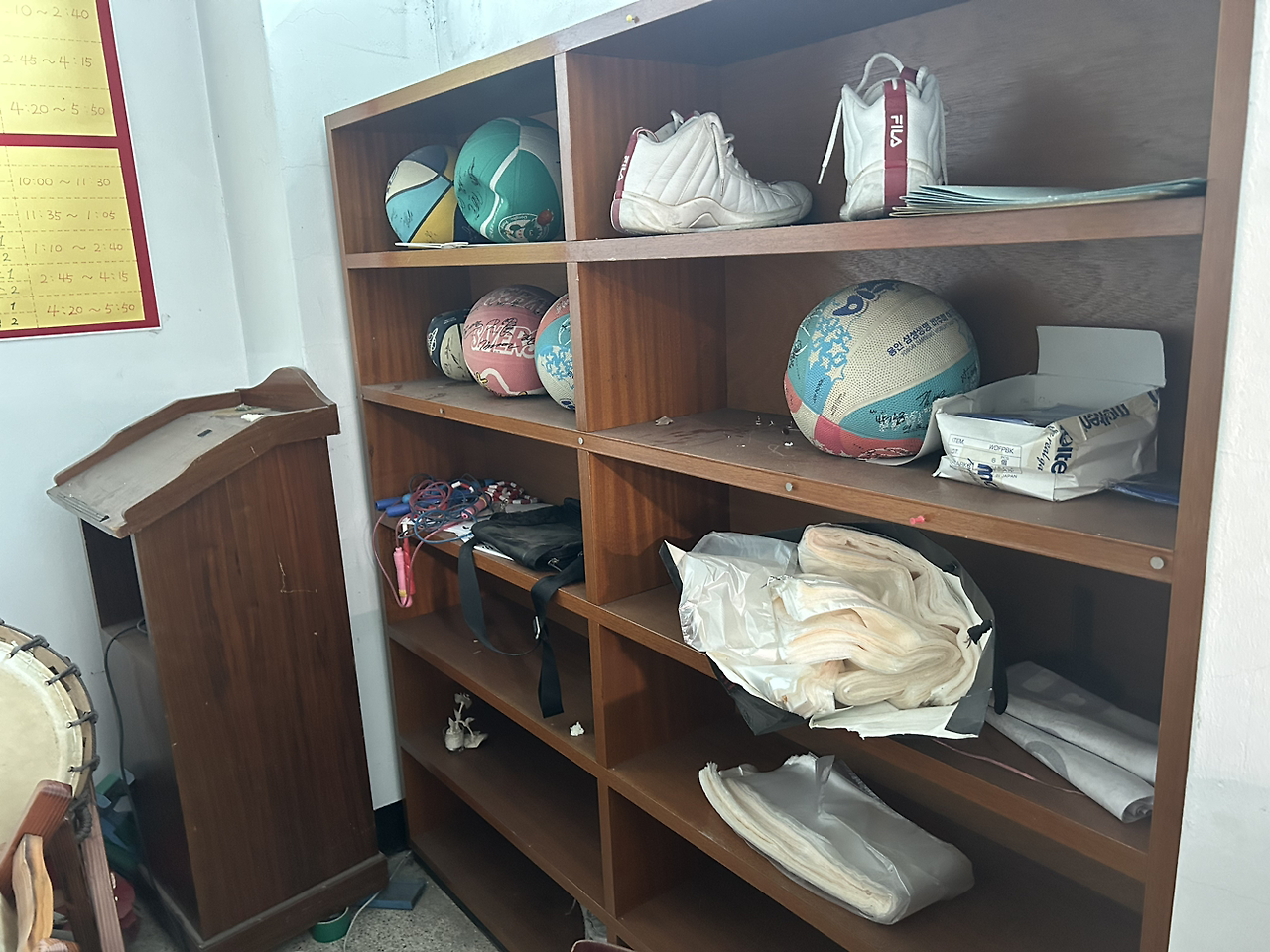 학교체육 용기구들을 보관하는 창고도 마찬가지다.