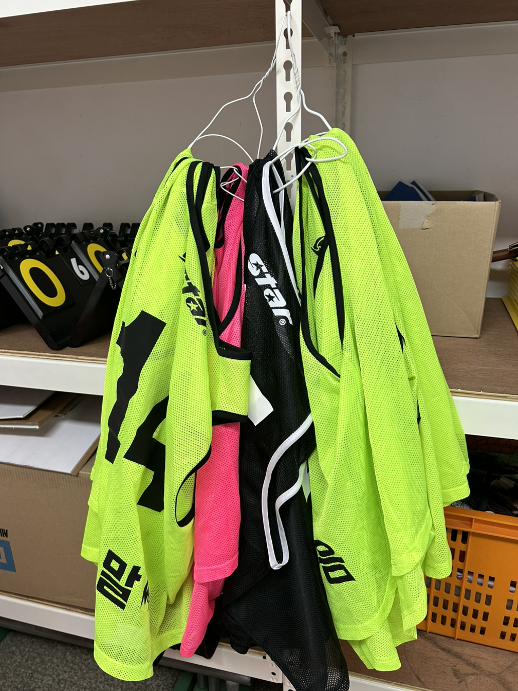 예전과 달리(?) 체육교사가 수업 시간에 지도를 하거나 경기를 제대로 진행하려면 팀을 구분할 수 있어야 한다. 그래서 수업 준비 용품에 팀조끼는 거의 필수라고 할 수 있다.