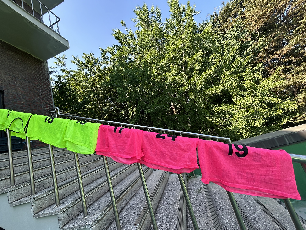 그렇다고 팀조끼에 최첨단 기술이 들어간 것은 아니다. 어찌보면 거적대기일 뿐이지만 색상만은 화려하다. 무려 형광색이다. 조끼가 진짜로 빛이 나는 건 아니지만 아이들은 나름 빛나보인다. 체육관에서 열심히 땀 흘리는 아이들의 모습은 좋은 의미로 발광 그 자체다.