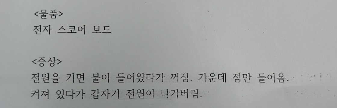구기대회를 앞두고 있는데 그 때 고장났으면