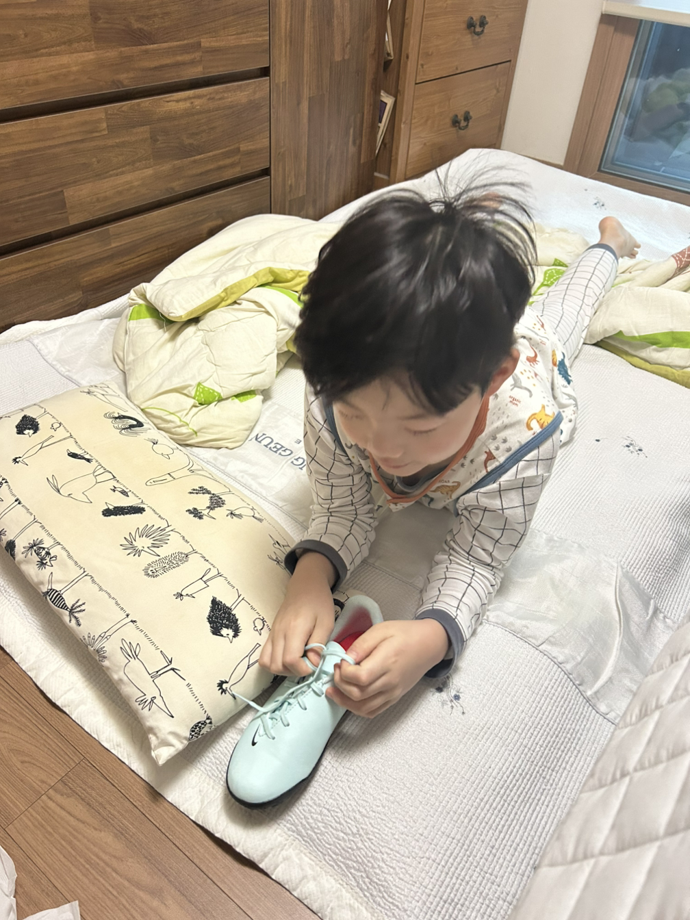 어젯밤 정말로 축구화를 끌어안고 잤다.
