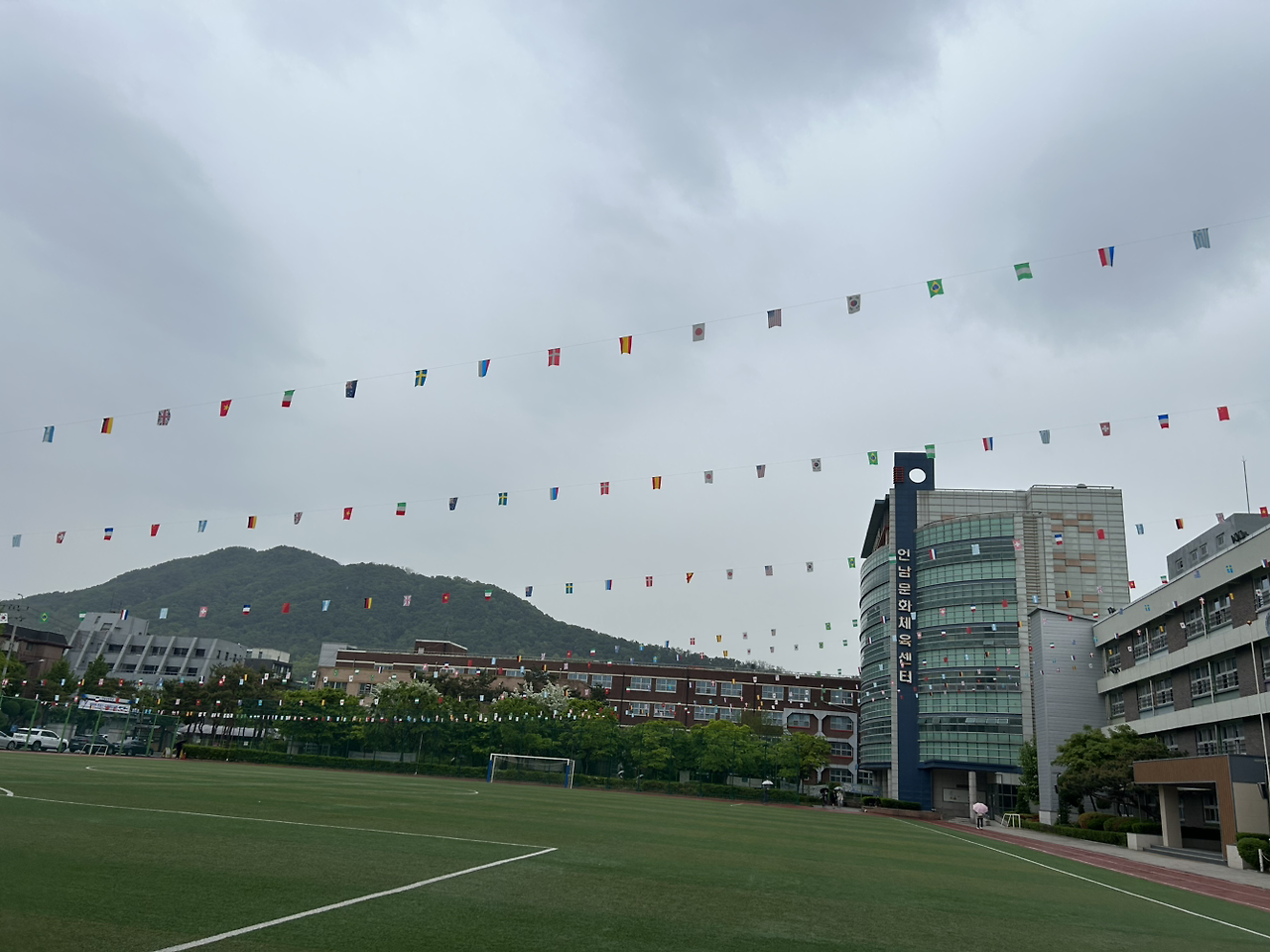 국민-초등학교 시절, 운동회에서 보던 만국기를 내가 직접 달고 있자니 감회가 새롭다.