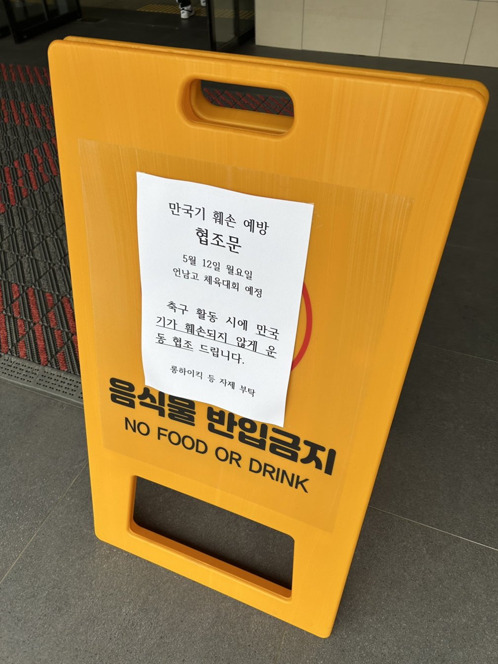 만국기가 훼손 되지 않게 주의해달라는 안내문을 설치하고 각 대표에게 문자도 보냈다.