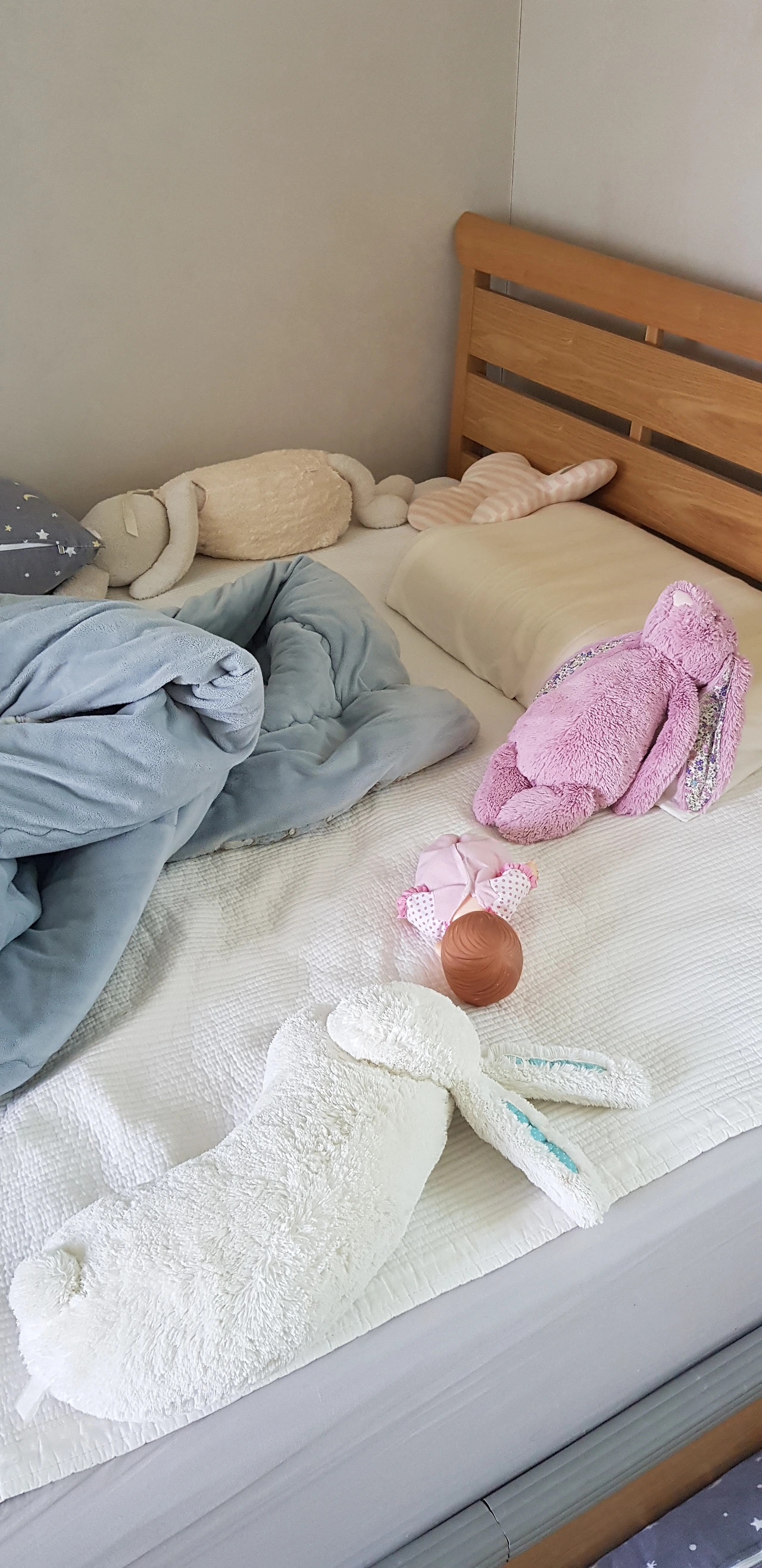 코를 많이 골 때면 아내는 밑에서 토끼 인형을 하나씩 던진다.
