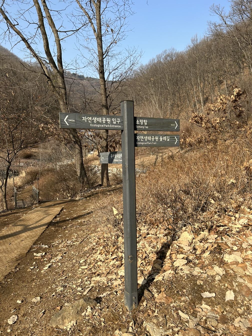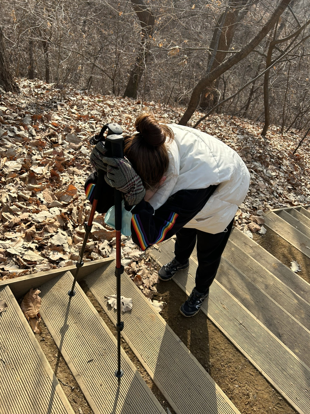 오늘은 둘레길이 아니라 소망탑 방향으로 갔다. 계단이 많고 제법 가파르다. 아내는 첫 구간 계단부터 힘들어했다. 하지만 1일차 만큼은 아니었다. 힘들었지만 소망탑으로 오르고자하는 의지가 보였다고나 할까. 첫날의 극한의 당황스러움을 지나온 터라 나조차도 심리적으로 준비가 되어있었다.