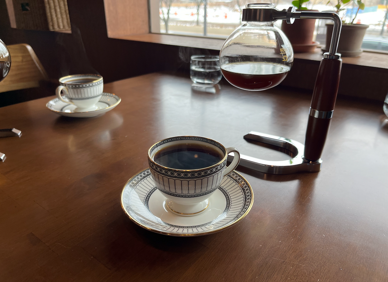사이폰 병을 보니 일본에 고노사 제품을 쓰던데, 정갈한 젠스타일 인테리어에 잔잔하지만 가볍지 않은 음악, 직원도 호텔리어처럼 유니폼 입고 격식을 차리며 커피를 대접하는 걸 보니 일본 호텔커피에서 넘어온 게 아닌가 생각이 들었다.