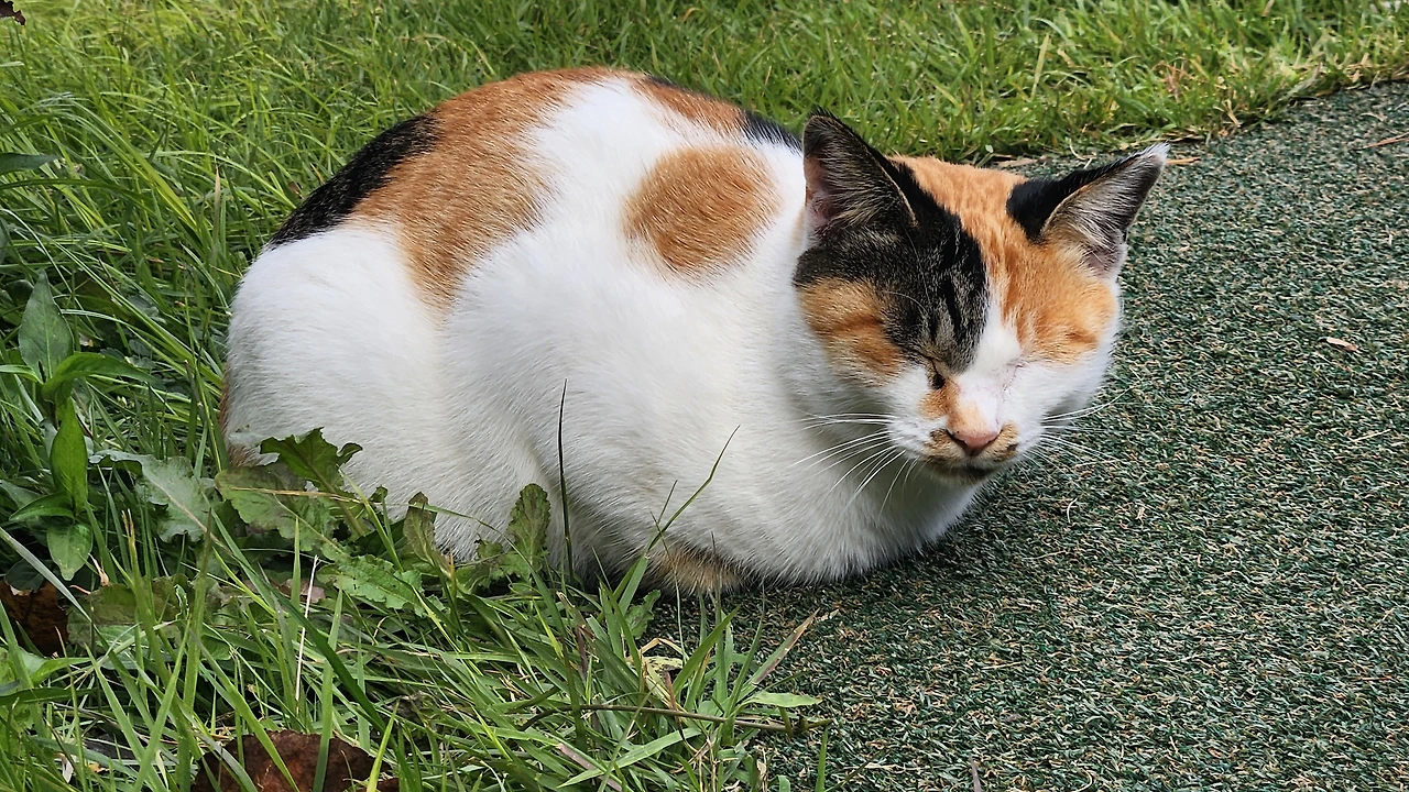 길가에 숨어 있는 들고양이를 부른다.