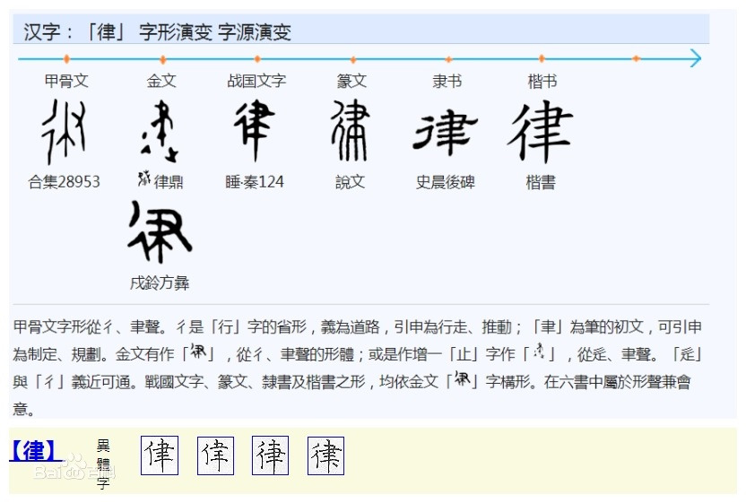 律(법칙 률) : 彳(조금 걸을 척) + 聿(붓 율)