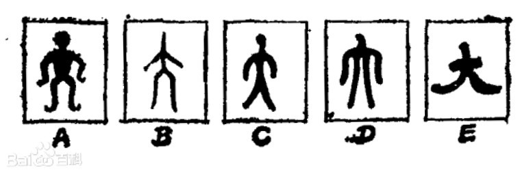 옆 모양을 보이는 자들의 그 흔함 때문에, 측면의 人은 점차 보편성을 갖게 된다. 그 영향으로, 정면의 大는 사람을 가리키는 글자에서 도태되고, 더 이상 사람을 지칭하지 못하게 된다. 다만, 글자 자체는 남아 그 파생한 의미인, ‘크다’, ‘훌륭하다’, ‘많다’의 뜻으로 가차 한다. 사람 大가 큰 大가가 되어진 대략의 경과가 그러하며, 이것은 상형자(象形字)가 가차하여 지사자(指事字)로 변한 대표적인 사례이다.