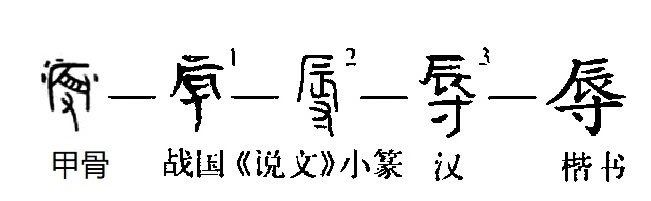 사족, 辱과 農은 갑골시대에 '일 하다'를 가리키기 위한 글자 간에 경쟁을 벌인다. 생산 환경의 변화에 적응한 農은 적자로 생존하고 辱은 도태된다. 대신 辱은 그 뜻이 바뀐다. 패자의 운명인가! 노동의 땀과 보람은 속절없이 지워지고 그 노역과 고통만이 부끄러운 낙인처럼 남았다.
