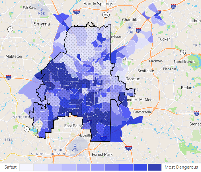 특히 창업 직후인 2018년 이후 애틀랜타에서 폭력 범죄와 살인율이 극적으로 증가했습니다. 가장 큰 급증은 2020년에 발생했으며 이는 전국적인 더 광범위한 추세를 반영한 것입니다. 2009년에서 2017년 사이에 애틀랜타의 살인은 2008년(105)과 2016년(113)에 몇 가지 예외를 제외하고 평균 90건 이하였습니다.(https://foropportunity.org/can-we-restore-safety-to-atlanta/)