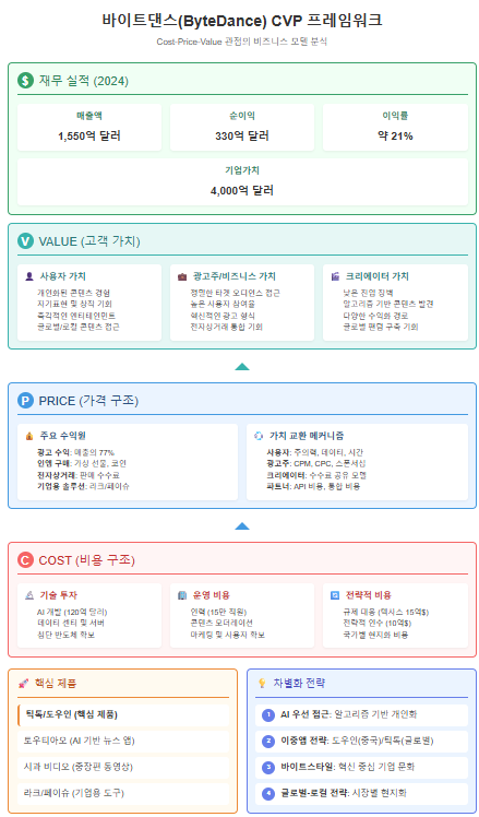 AI 기반 개인화 알고리즘: 바이트댄스의 핵심 제품인 토우티아오(뉴스 추천), 도우인/틱톡(숏폼 비디오)은 정교한 AI 추천 엔진을 기반으로 사용자에게 고도로 개인화된 콘텐츠를 제공합니다. 이는 사용자 체류 시간을 극대화하고 플랫폼 충성도를 높이는 핵심 요인입니다.