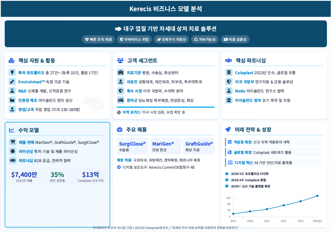 첨단 기술의 적용 범위 확대: 만성 창상 및 화상 치료 분야에서의 성공을 발판 삼아, 구강외과, 유방 재건(Kerecis® Pectus), 헤르니아 복원(Kerecis® Hernia), 그리고 신경외과 영역의 경막 복원(Kerecis Dura) 등 보다 복잡하고 고부가가치를 지닌 수술 및 재건 분야로 제품 포트폴리오를 확장하고 있습니다.