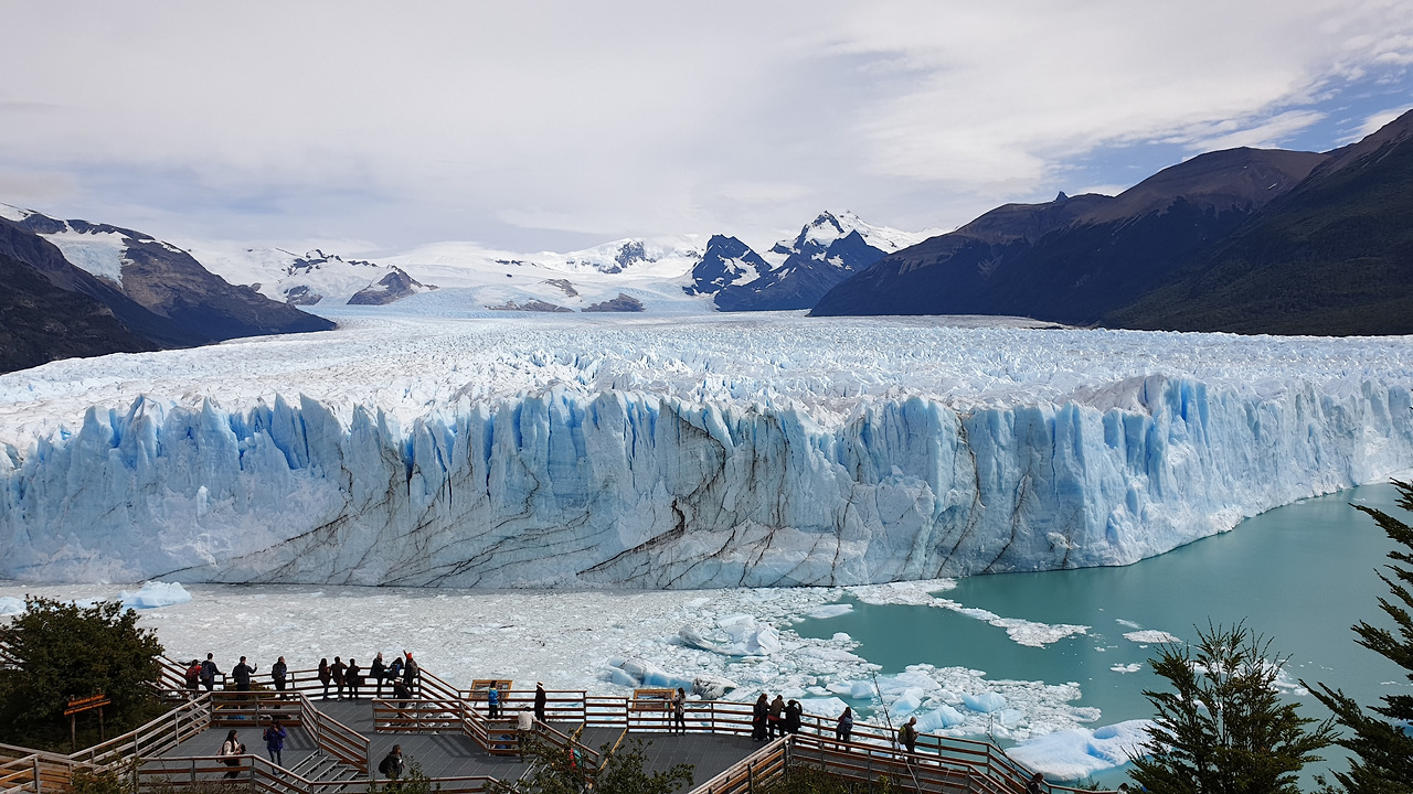 페리토 모레노 빙하를 감상하기 위해, 크루즈 유람선을 타고 빙하에 접근한다. 빙하의 길이 35km, 폭 6km, 높이 65m로 세계에서 세 번째로 크다. 겨울철에 빙하가 생성되어 여름철에 하루 2m씩 밀려나고 소멸하고, 자라기를 반복한다. 빙하가 전진하다 앞의 땅에 막혀 호수 수면으로 차오르다 물과 부딪쳐 구멍이 생기고 무너진다. 빙하가 무너지는 장면을 보려고 학수고대하다 떨어지는 순간을 포착해도 아! 탄성, 그 순간을 놓치면 아쉬워서 탄성, 여기저기 감탄사가 터져 나온다.