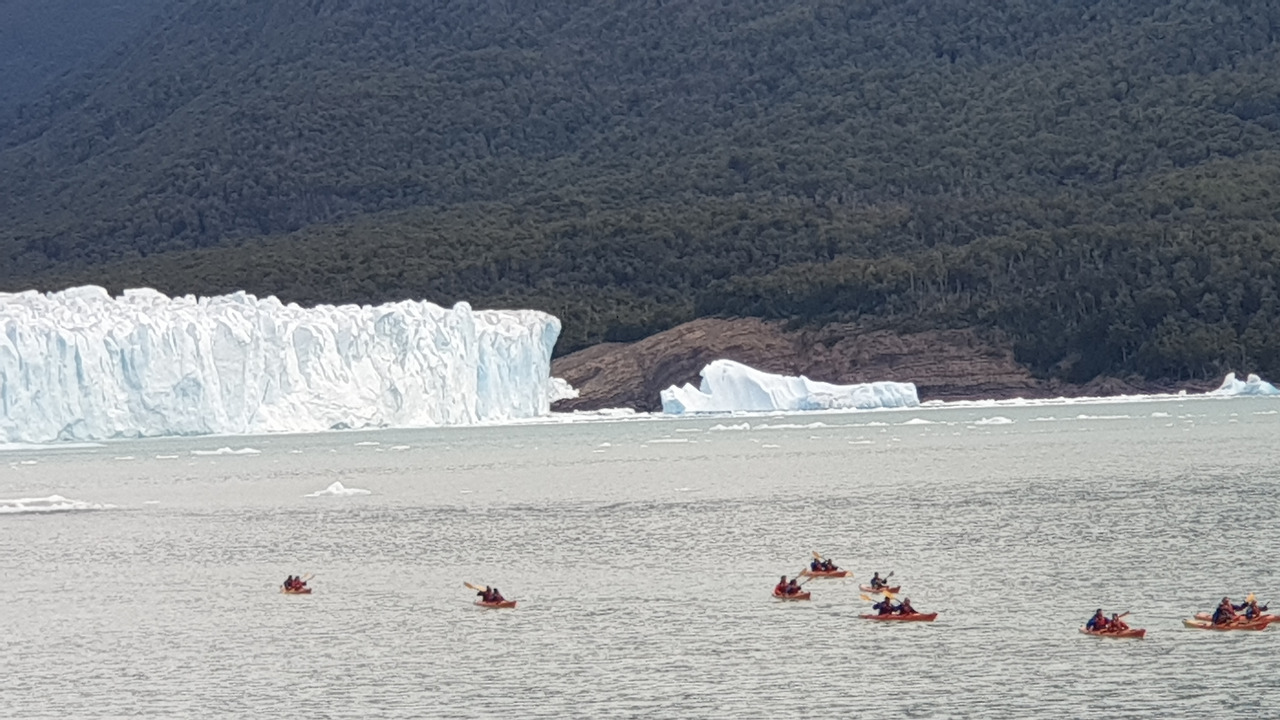 거대한 빙하 조각이 무너지는 굉음은 천둥소리 같다. 물 위의 유빙들과 빙하의 물은 아르헨티노 호수로 흘러든다. 바위와 빙하의 마찰로 생긴 빙하 가루들도 둥둥 떠다닌다. 페리토 모레노 빙하를 배경으로 아렌티노 호수에서 카약을 타고 있는 저 사람들은 신선인가. 한 폭의 그림이다.