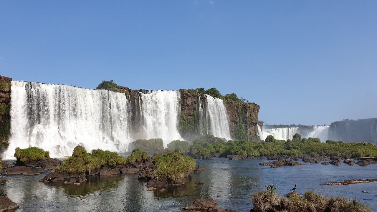아르헨티나에서 버스로 국경을 넘어, 브라질로 왔다. 마지막 여행 국가다. 포스두 이과수 전망대 길을 오르며 만나는 다양한 야생동물들도 흥미롭다. 시원하게 쏟아지는 물소리, 병풍처럼 넓게 펼쳐진 하얀 폭포, 물안개, 무지개 등이 함께 베풀어주는 향연이다. 같은 이과수강 폭포지만 아르헨티나 푸에르토 이과수가 웅장하고 장대하다면, 브라질의 포스두 이과수는 아기자기하고 변화무쌍하다. 폭포도 사람처럼 어느 방향에서 보느냐에 따라 사뭇 다른 매력을 가졌다.