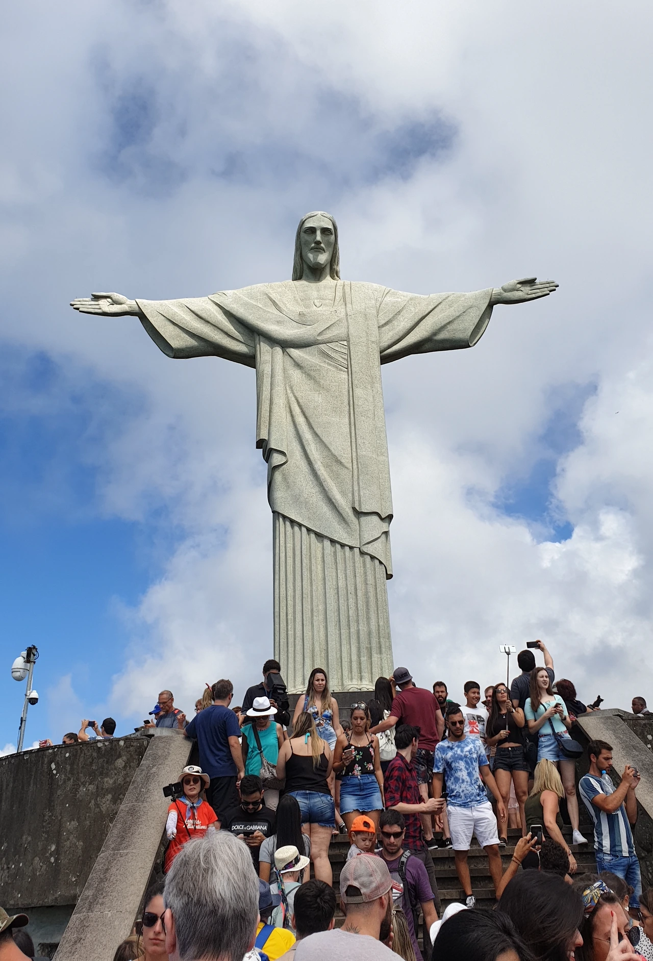 예수상 아래 모인 사람들은 거대한 예수상이 한 프레임에 들어오지 않으니 사진을 찍는 포즈들도 각양각색이다. 여기서 독사진 찍기란 거의 불가능하여 자신이 중심에 위치만 해도 성공이다. 다양한 인종이, 다양한 포즈로 함께 찍힌 사진이 나중에 보니 의외로 재미있다. 예수상 아래에서 보는 리우데자네이루의 풍경은, 이 항구가 왜 세계 3대 미항이라는 명성을 얻게 되었는지 여실히 증명해 주고 있었다. 환상, 그 자체다.