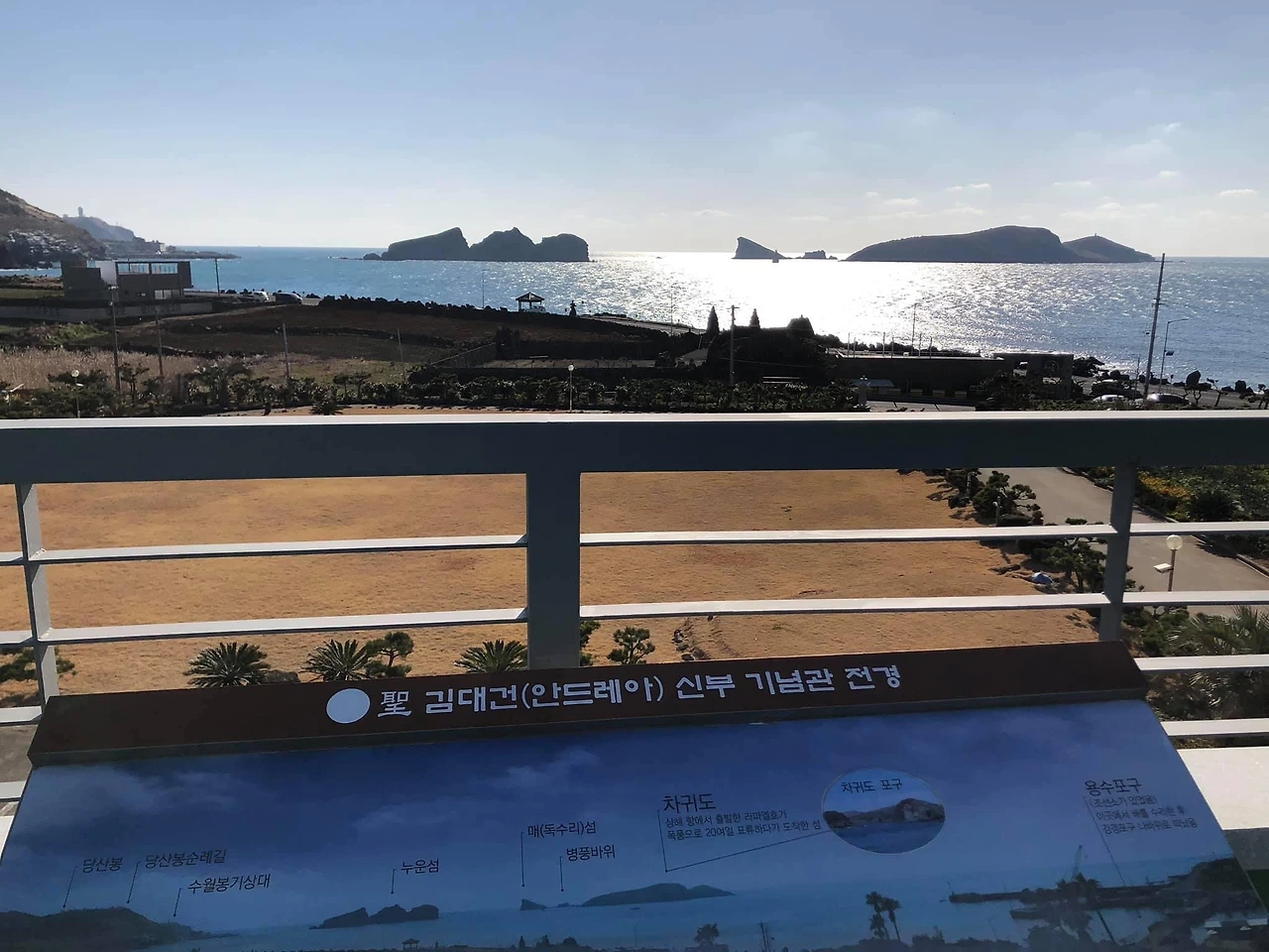 용수성지는 성당과 기념관이 있다. 2층엔 김대건 신부님의 일생에 대한 역사를 만날 수 있고, 3층에선 아름다운 바다 위의 진귀한 섬들을 볼 수 있다. 차귀도와 누운섬.