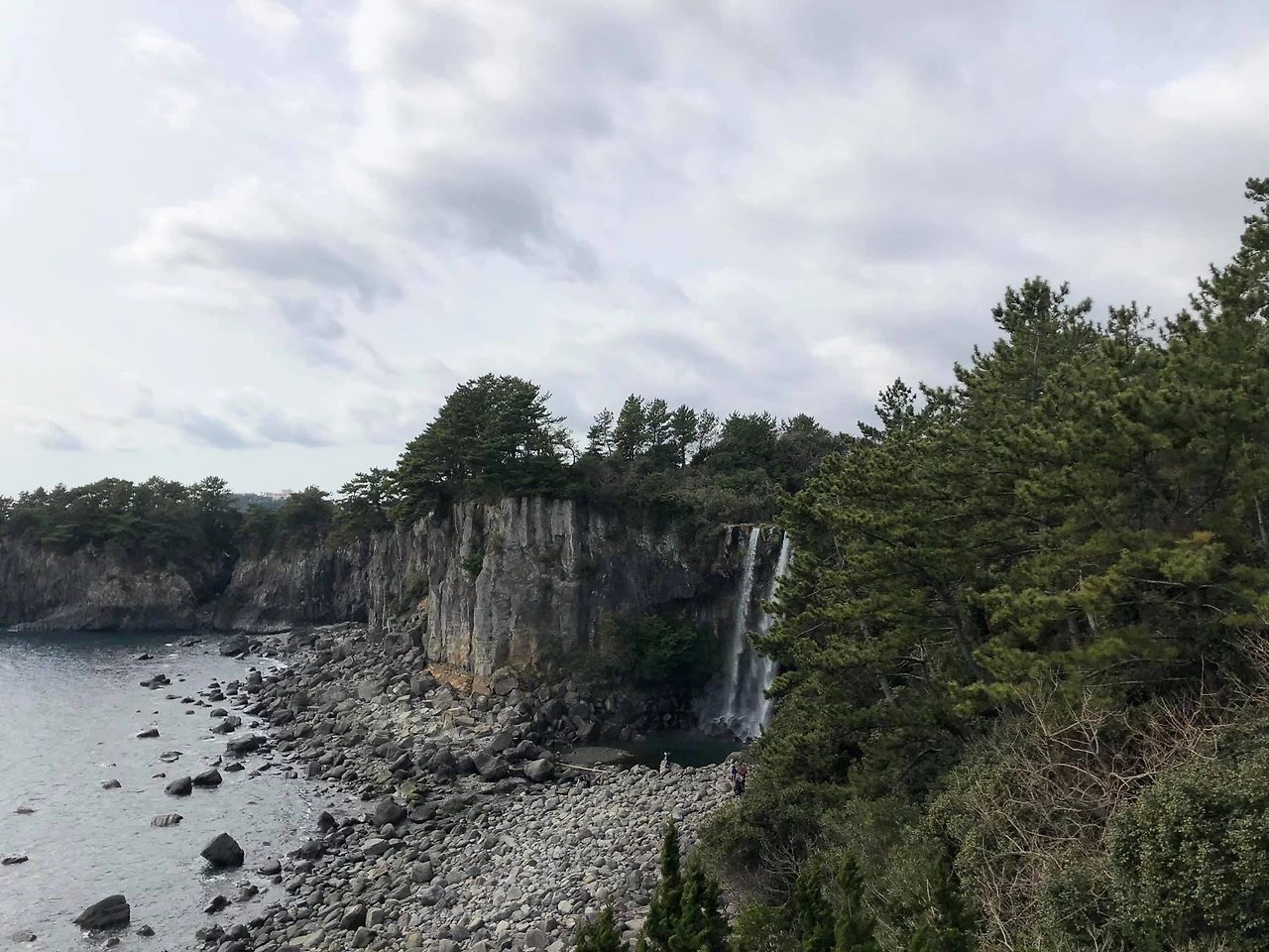 정방폭포는 떨어지는 물줄기가 곧장 바다로 흘러나가는 특이한 폭포다. 아시아선 유일하다고 한다. 관광객들 인원수 제한 때문에 시간단위로 입장이 가능했다. 겨울 정방폭포는 처음이다. 폭포의 물줄기와 그 소리의 웅장함이란.... 자연의 위대함에 또 한 번 감탄했다.