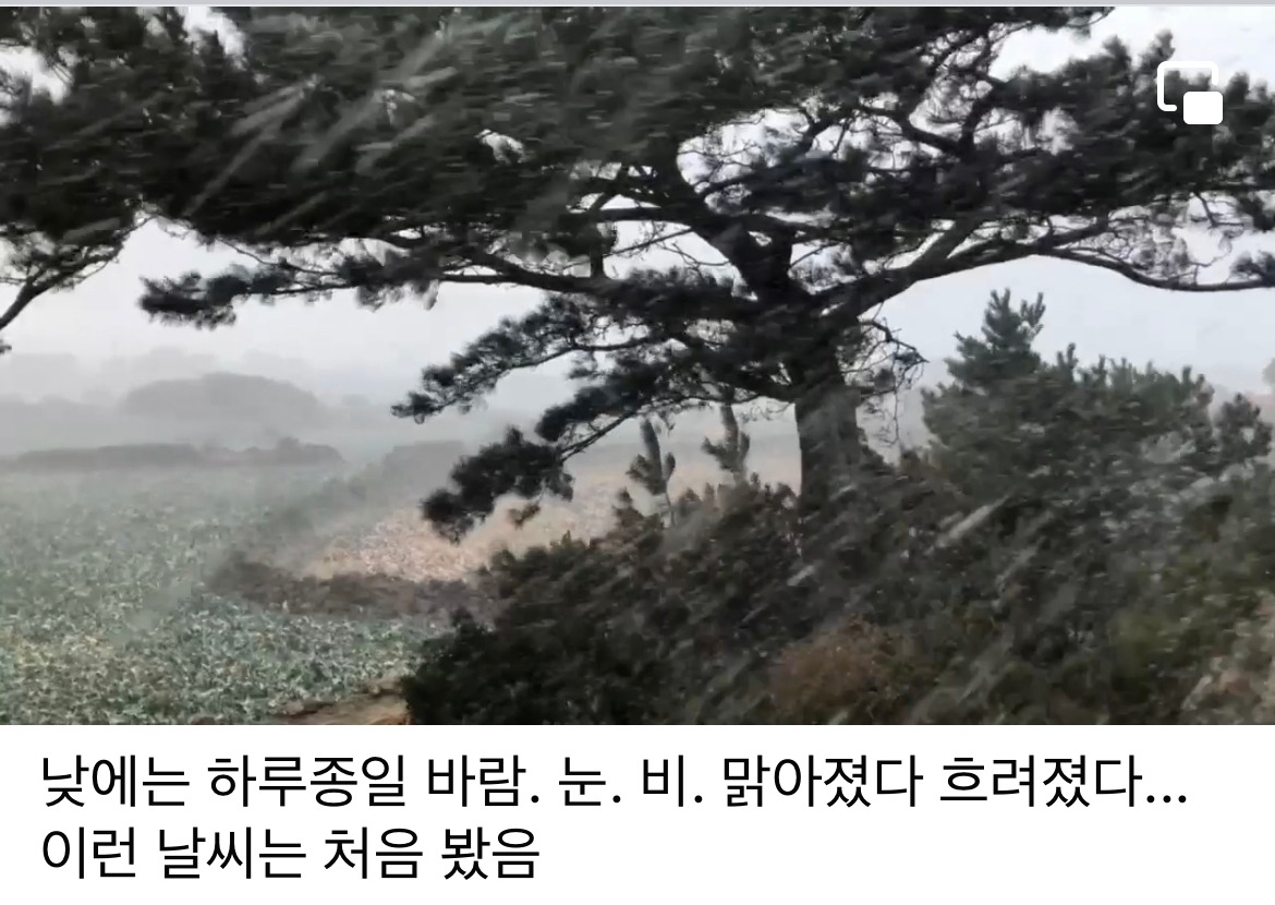 눈과 비가 뒤섞인 강한 바람이 불었다.