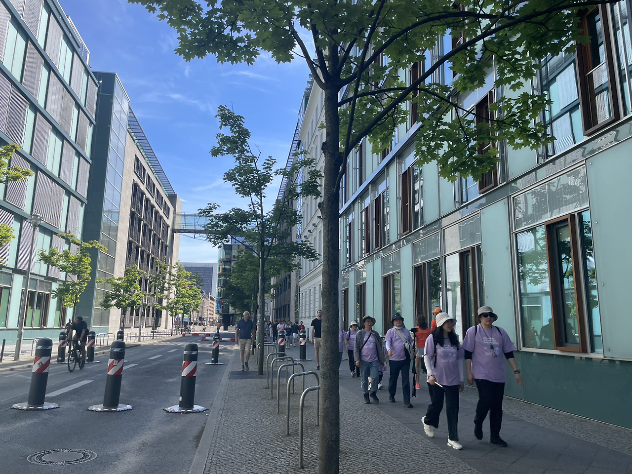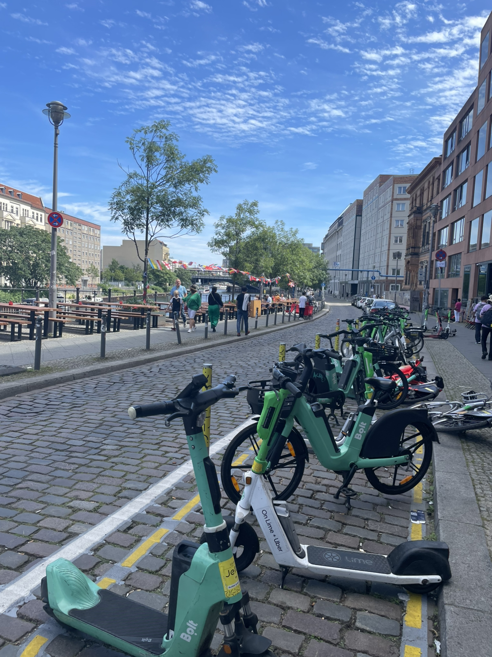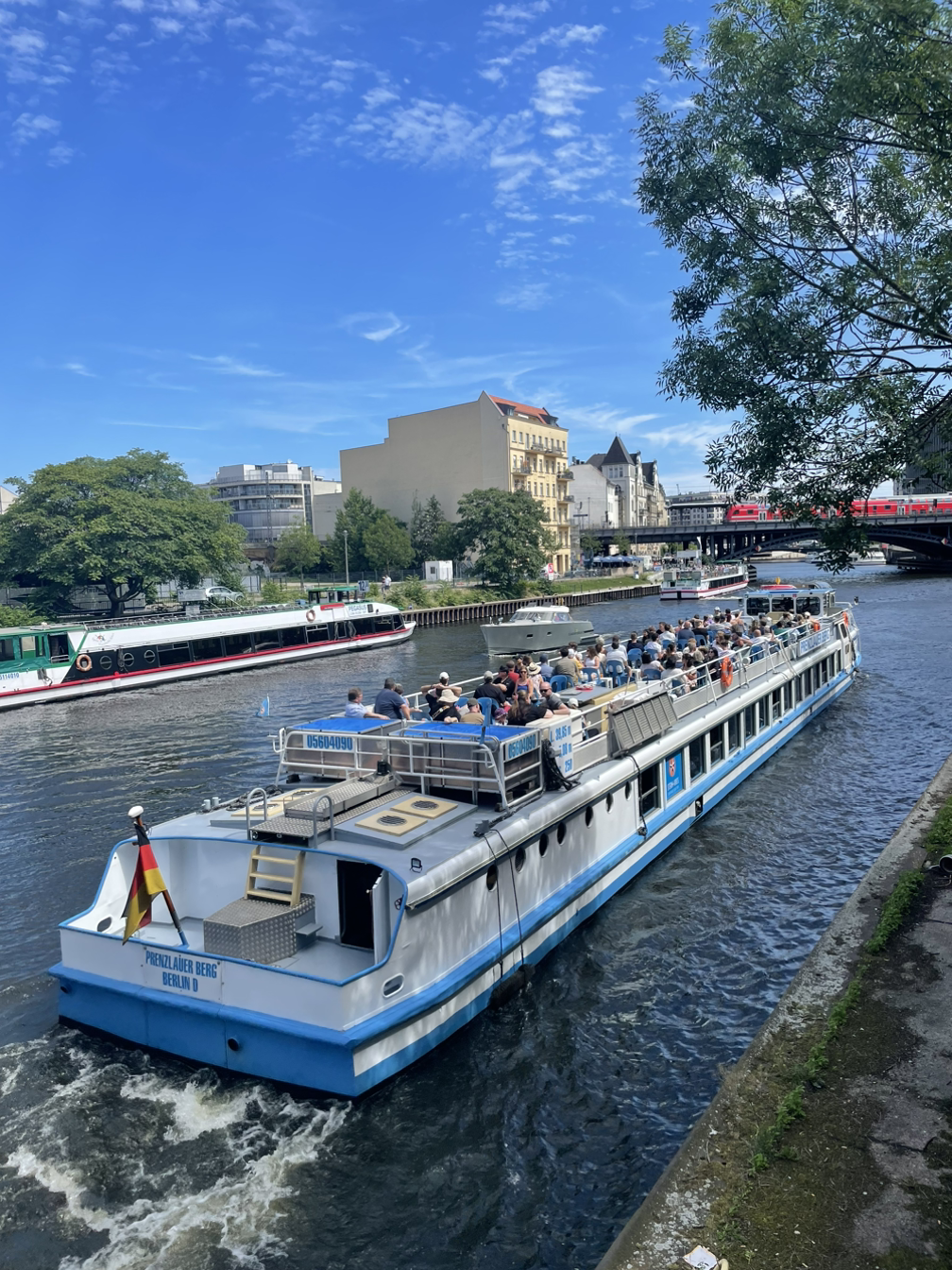 관광객들이 배를 타고 강을 가로질러 베를린 의회 주변을 볼 수있다, 독일의 상징인 자전거를 비롯해 이동수단들이 곳곳에 놓여 있다.