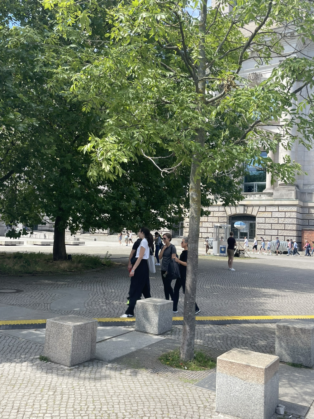 독일 의회를 주변 총리공관도 보이고, 시민들이 의회와 가깝게 마주 할 수 있는 공간이 즐비하다. 광장 안으로 강이 흐른다. 밤에 더 아름답고 하는데 그걸 볼 수 없었다. 광장에 홀로 외롭게 서있는 통일 나무???