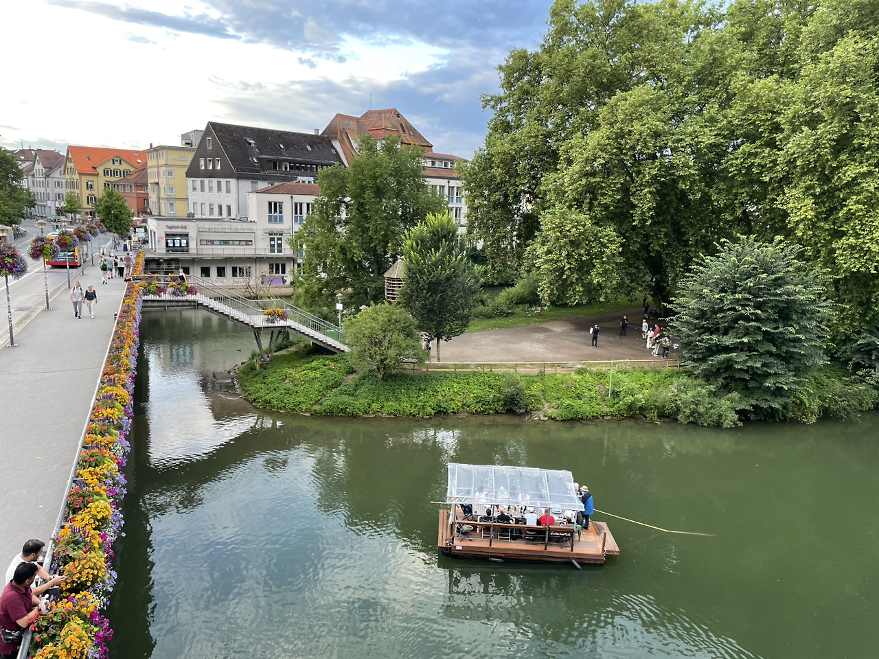 고풍스러운 건물과 어우러진 넥카강에서 배를 띄우고 노래를 할 시간도 갖는다. 기대만발이다.